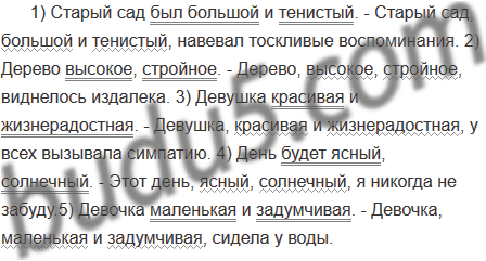 1) Большой и тенистый. 2) Высокое, стройное. 3) Красивая и жизнерадостная. 4) Ясный, солнечный. 5) Маленькая и задумчивая.